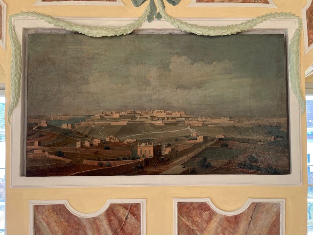 In diesem von Machtwechseln und geopolitischen Spannungen geprägten Umfeld entstanden die sechs monumentalen Stadtansichten La Vallettas, die noch heute den Saal schmücken. Sie zeigen die imposanten Festungsanlagen der Ordenshauptstadt – Sinnbilder für Glauben, maritime Stärke und die internationale Bedeutung des einst mächtigen Seeritterordens.