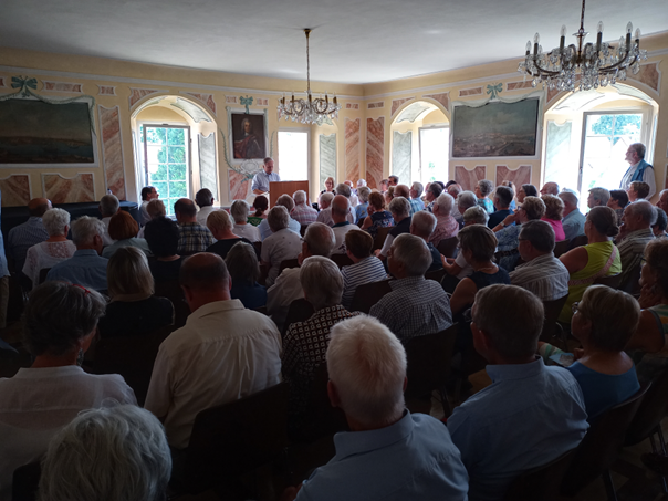 Das Interesse war so groß, dass der Maltesersaal aus allen Nähten platzte und die Publikumsstühle bis in den Flur gestellt werden mussten. Die Zuhörer haben ihr Kommen sicherlich nicht bereut, immer wieder wurden die humorvollen Geschichten und Geschichtchen durch spontane Lacher wohlgefällig aufgenommen.