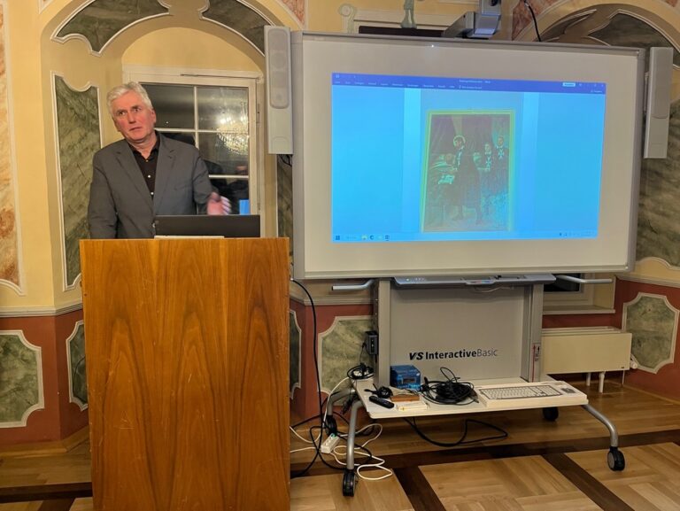 „Des Königs neue Schlösser – Schlösser geistlicher Herren als Beutegut in Württemberg“ war denn auch der Titel des Vortrags von Prof. Brüser. Friedrich, der Dicke, Württembergs erster König, wollte zunächst gar nicht nach Württemberg. Er verfolgte wie sein Vater eine militärische Laufbahn am Hofe Friedrichs des Großen.